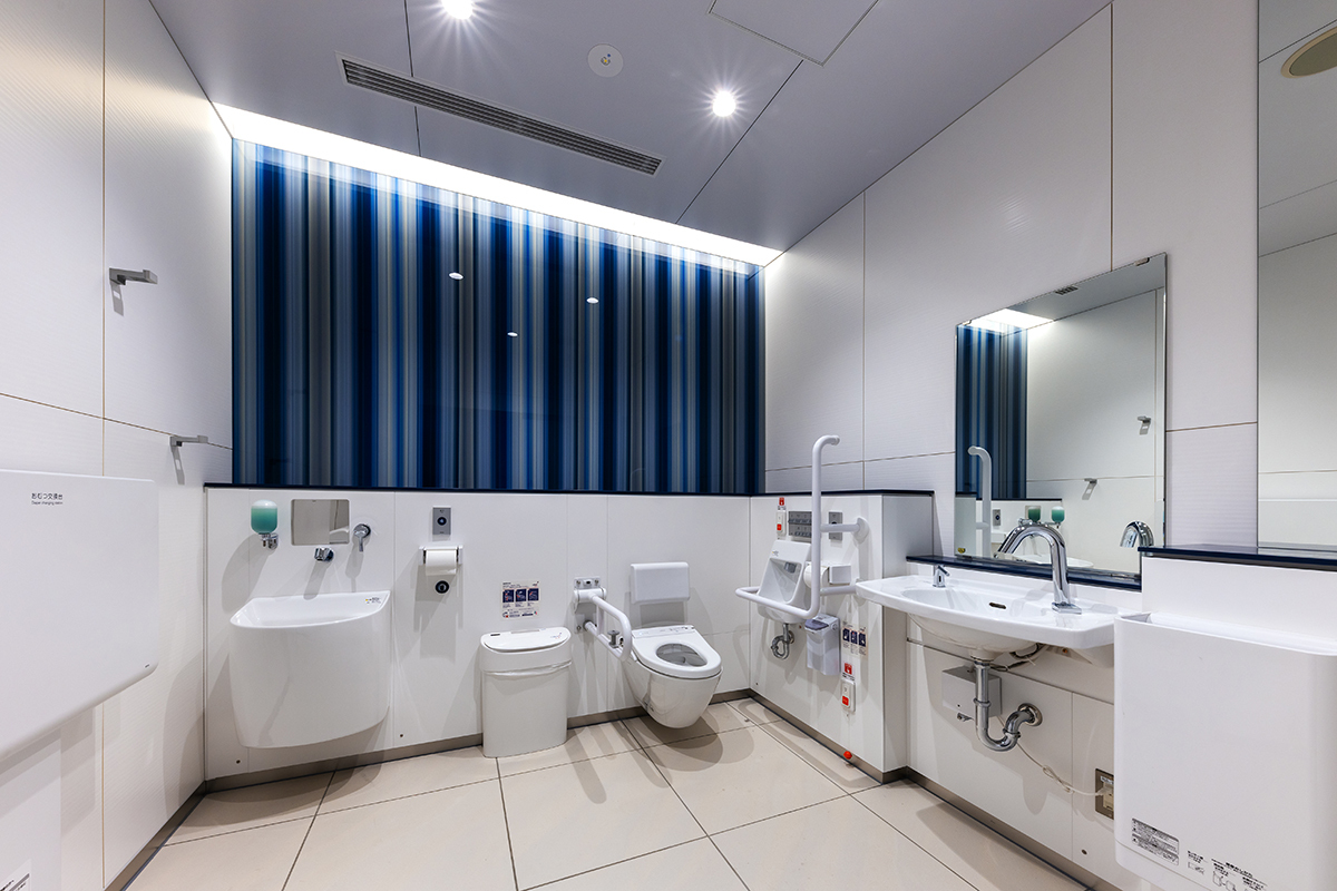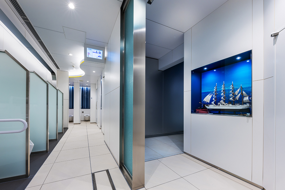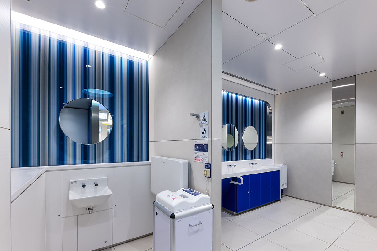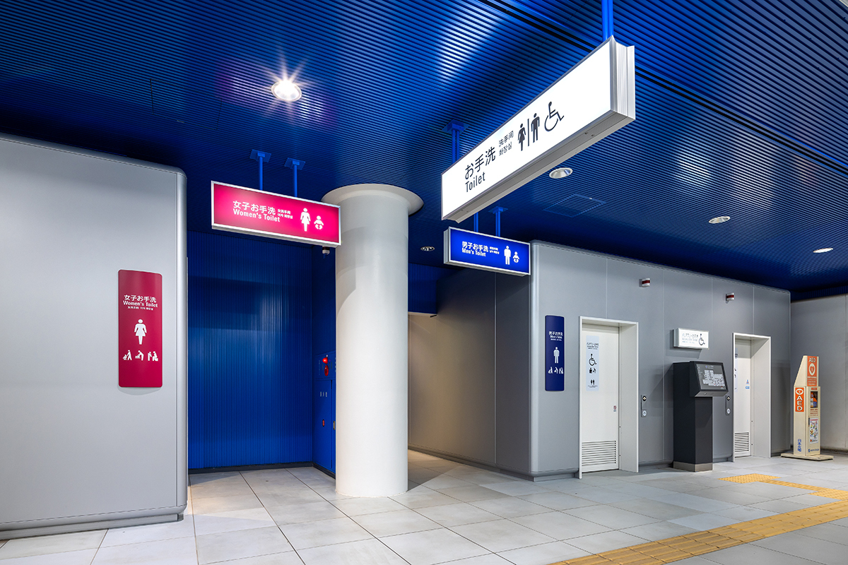 お客様サービス向上を目的とした旅客用男女トイレ・多機能トイレの新設・改修工事。
